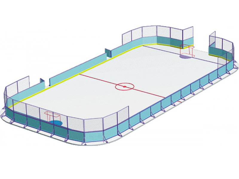 Хоккейная коробка состоит из защитного ограждения, которое устанавливается на закруглениях и заворотами, а также из борта из стальной сварной рамы, дерева или пластика.